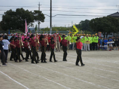 演奏・バトンクラブの子供たちは、運動会のオープニングアトラクションと、開会式の演奏を行いました。先日の、鼓笛・金管バンド連盟中央大会の時と同じように、立派な演奏を藤塚小の校庭に響かせてくれました。会場からも大きな拍手をいただきました。