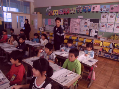 昨日から3ディズチャレンジ事業で、豊野中学校の1年生が5人本校に来ました。1年生と2年生のクラスに入り、丸付けをしたり、休み時間に遊んでくれたりしています。はじめはは少し緊張していたようでしたが、活動にも慣れ進んで子どもたちに関わってくれ、学級の子供たちも大変喜んでいます。明日が最後となりますが、よろしくお願いします。