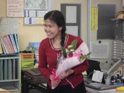 英語を楽しく教えてくださったレニ先生が、今日で豊野小学校最後となりました。最後に職員室でささやかなお別れをしました。また、4月から来ていただけることを楽しみにしています。