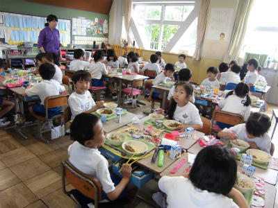 今日は、たんぽぽ学級と2年生の子どもたちが、食育の一環で、グリンピースのさやむき体験をしました。実のしっかりと詰まったグリンピースのさやをを子どもたちは一生懸命むいてくれました。出来上がったグリンピースは、今日の給食で出され、子どもたちはいつも以上においしくいただきました。