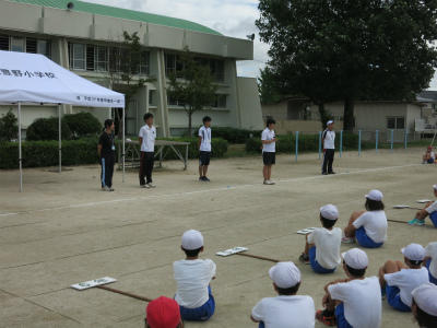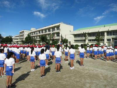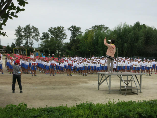 今日の業前運動は、運動会の歌の練習をしました。運動会の歌や校歌を中心に行いました。外で歌うことは少なく、まだ、少し声が小さく感じましたが、練習を重ねることで、当日はきっと青空に響き渡る歌を披露することができると思います。楽しみにしていてください。