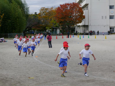 晴天のもと、子供たちは元気に5分間走に取組みました。16日に行われる持久走記録会では、練習の成果を発揮できることを願っています。