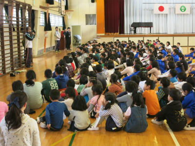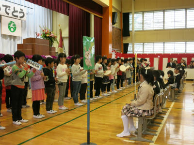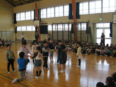 1年生も交えて、全校揃っての今年初めの音楽朝会を行いました。