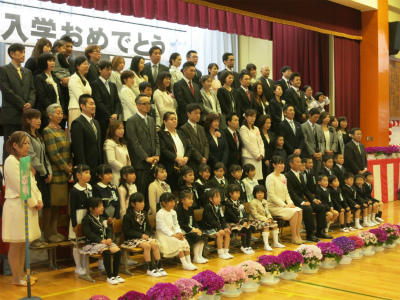 本日、豊野小学校入学式が行われました。77名の新入生が、全員元気に出席しました。担任の先生の発表の後、一人一人の呼名では、どの子も元気に返事をすることができました。歓迎の言葉の6年生も、2年生の学校を代表しての発表もとても立派にでした。