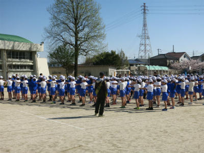 行進は、校長先生が指導してくれました。腕を大きく振り行進します。