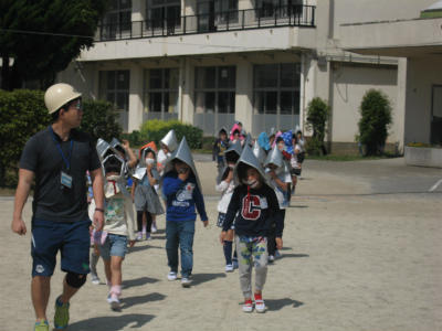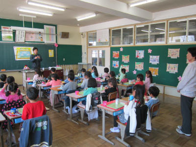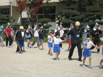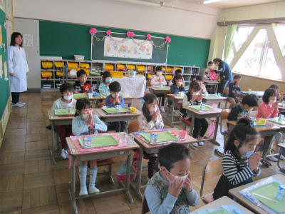 給食の前に、1年生だけの避難訓練も行いました。明日は、1年生を迎える会があります。