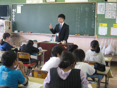 4年生が社会科の学習の一環として、駐在所の富田様をお招きし、警察官の仕事について学びました。