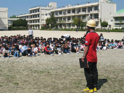 今年最初の避難訓練を実施しました。地震から火災が発生したという設定でした。