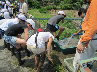 「田んぼの水は、気持ちいい-。」
