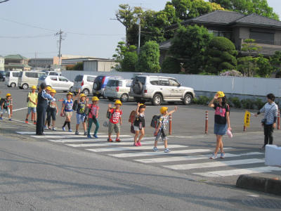 交通指導員さんやお母さん方にも、笑顔で元気なあいさつです。