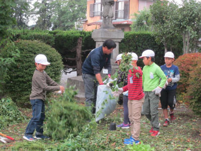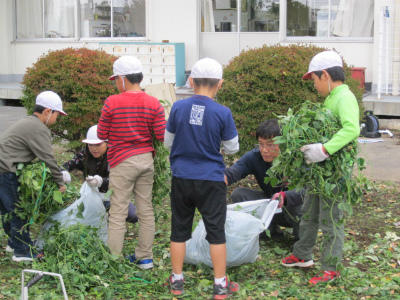 こちらは、台風21号で被害のあった花の片づけを昼休みにしてくれています。