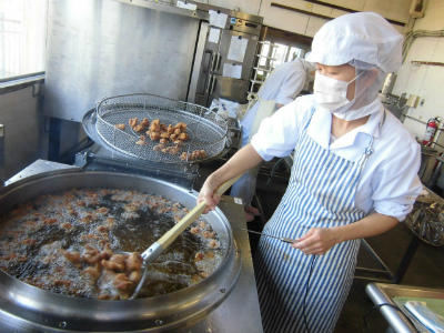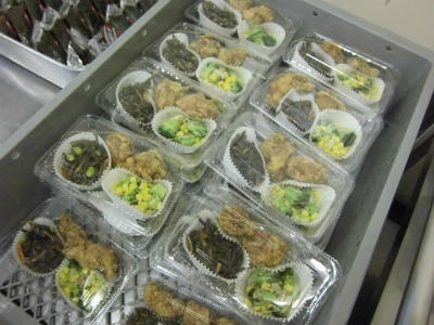 今日の給食は、いつもと違って・・・・、パック詰め。