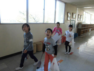 コスモスランチの各教室に向かって、6年生が1年生を迎えに行って。