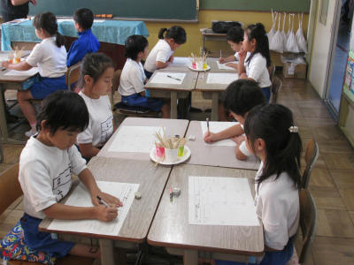 縦割りグループでのコスモスランチです。(豊野小のシンボル、コスモスにちなんで)
