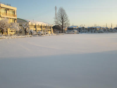 金曜日に、職員と子供たちで除雪した校庭の雪の状態です。