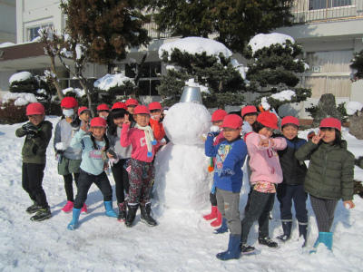 朝の会で、安全指導を受けて、楽しく雪遊びです。