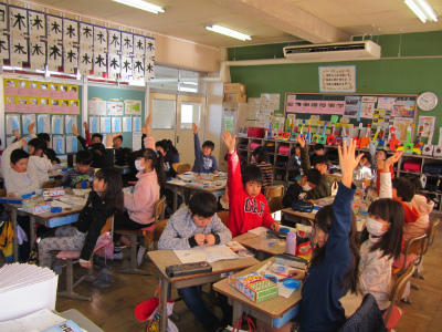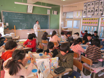 2月の全校朝会は、児童の体調不良を考慮して、校内放送で行いました。2月の節分が近いことから、「ももたろう」を読んだのですが、校内放送だったため、映像なしの話だけになってしまい、かわいそうでした。