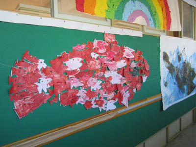 こちらも、28日まで春日部市中央公民館で展示されていた「ふれあいアート展」です。何人もの保護者の方たちも、作品をご覧になってくださっていました。