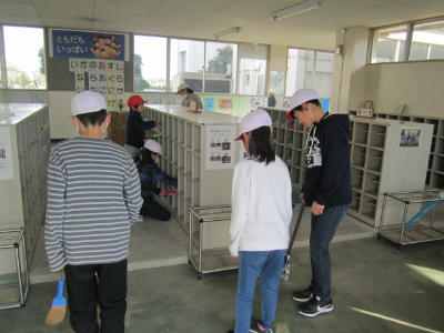 今朝のおはなし会は、1・2年生とたんぽぽ学級です。子供たちが、おはなし会の方たちをお迎えに来ました。