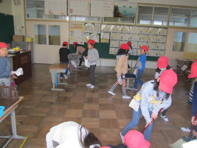 1年生が帰りの会を終えて、教室でさよならのあいさつです。