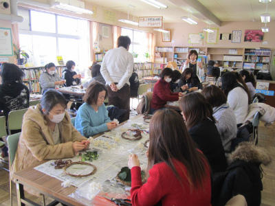 PTA主催のプリザード・フラワー講習会が行われ、たくさんのお母さん方が、楽しそうにすばらしい作品を作りました。
