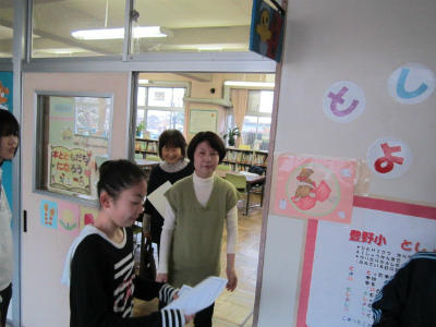 豊野小元気にあいさつし隊のあいさつ運動です。