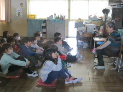 6年生に、豊野地区見守り活動推進協議会からラナンキュラスのきれいな花のプレゼントをいただきました。