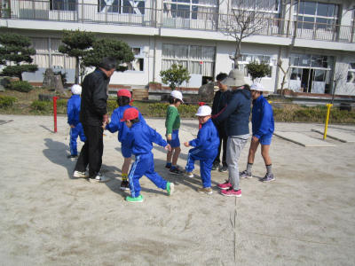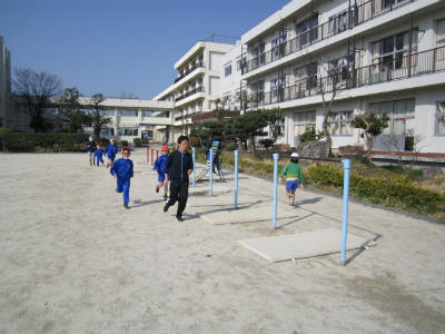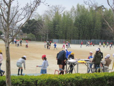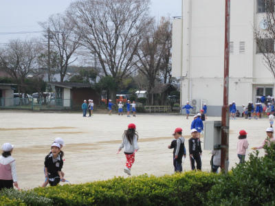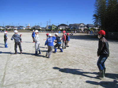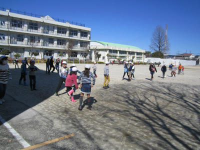 この後、3年生に鬼ごっこに誘われ、一緒に遊びました。「疲れた~。」