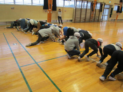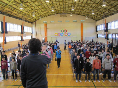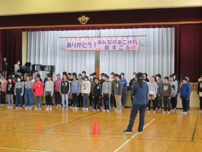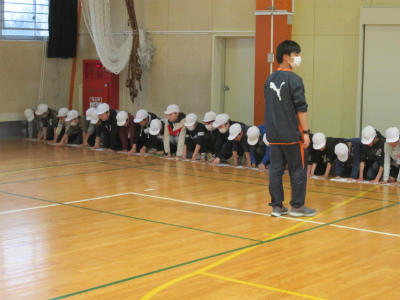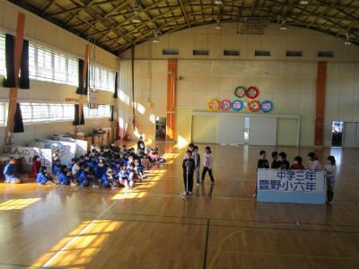 体育館では、6年生を送る会の代表児童の練習も行われています。
