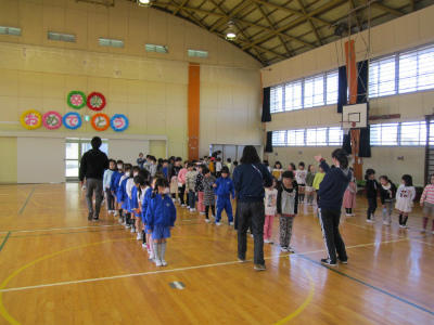 1年生が、お兄さんお姉さんの手を引いて、入場です。