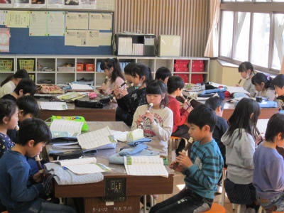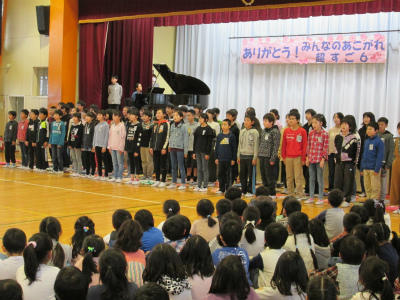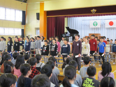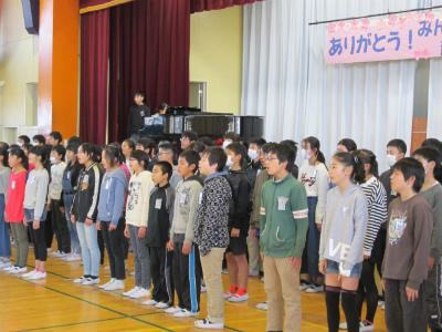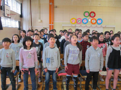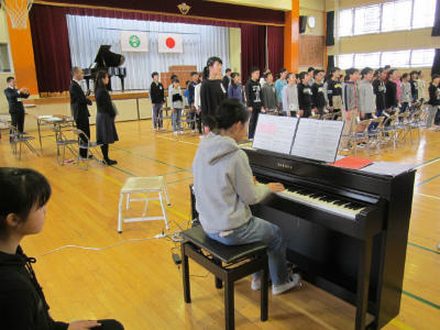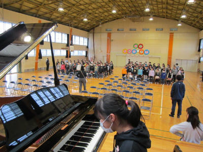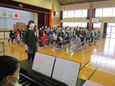 6年生が、送る会のお礼の発表で合唱の練習をしています。