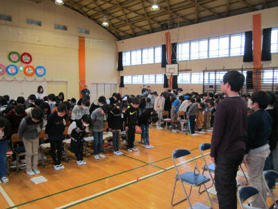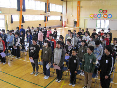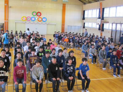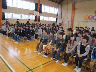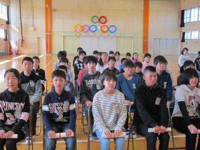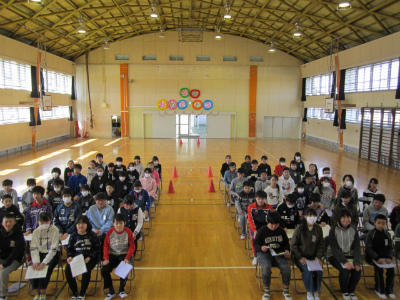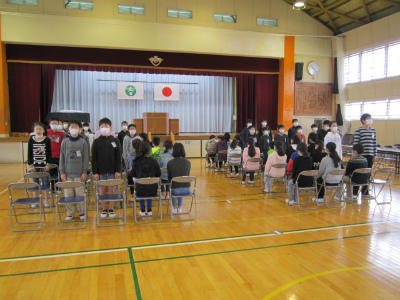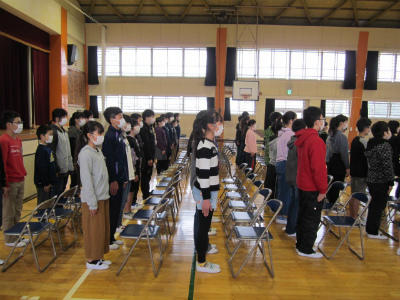 いよいよ卒業式の練習が、始まりました。卒業式に臨む心構えについて校長から話を聞き、早速姿勢、礼の仕方などについて練習しました。