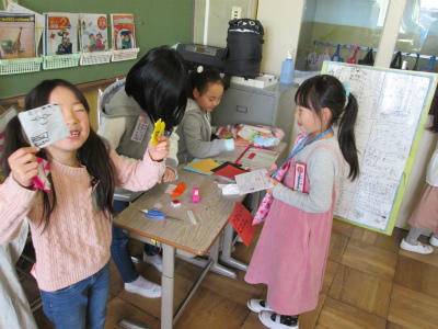 決められたお金の範囲内で買い物をする学習で、どの子もよく考えて買う物を決めました。
