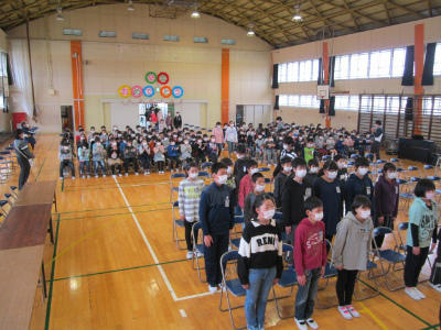 式の途中で静かに会場に入り、すわって出番を待ちます。教員も座って雰囲気を出します。