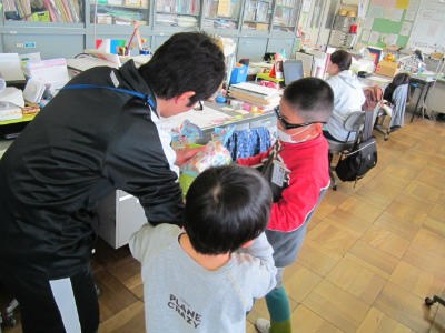 20日、豊野地区見守り活動推進協議会から、卒業を祝っていただいたラナンキュラスの花を6年生に渡しました。