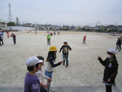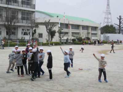 この後、3年生に鬼ごっこに誘われ、一緒に遊びました。「疲れた~。」