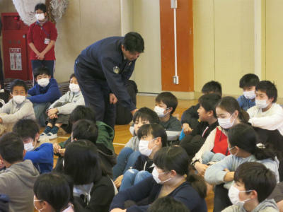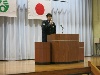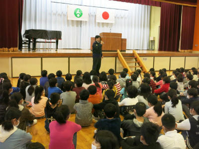 第3学期の修了式が行われました。代表児童が、修了証を壇上で受け取ります。