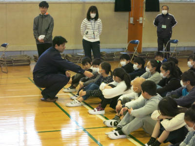 1年生が、入学式で入学児童に発表する「在校生歓迎の言葉・校歌紹介」の最後の練習を行いました。