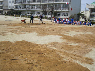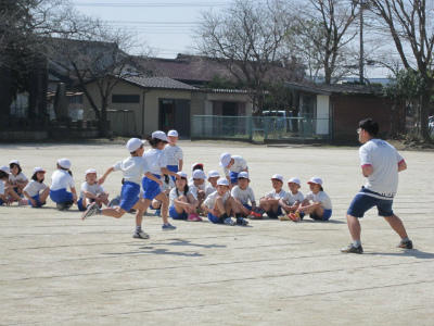 この後、3年生に鬼ごっこに誘われ、一緒に遊びました。「疲れた~。」