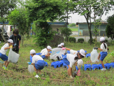 校庭を学年毎に草取りです。