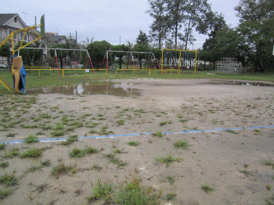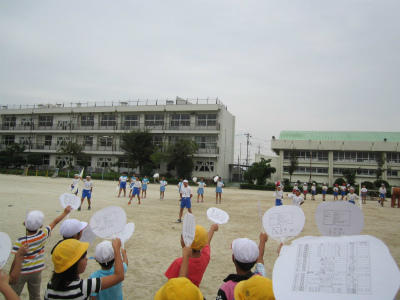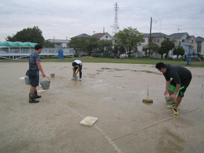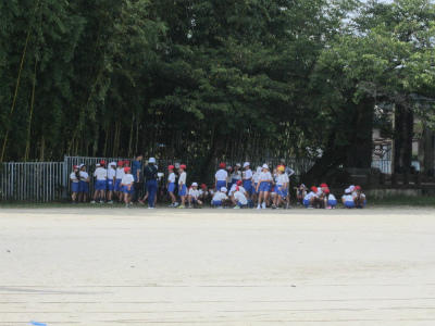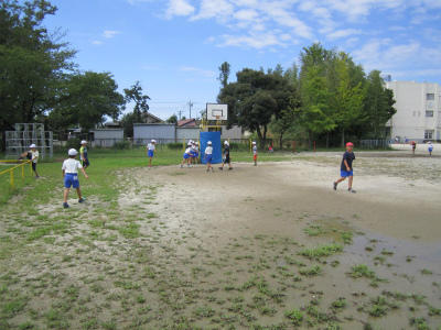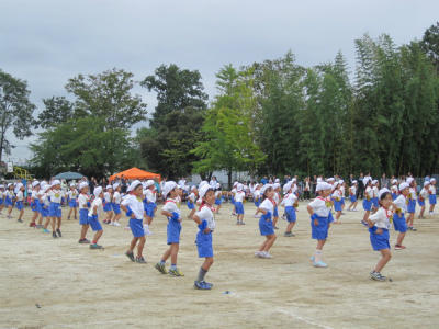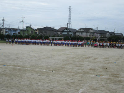 昨日まで雨が降り続き心配された運動会ですが、今朝は雨も上がり、校庭の水たまりも思ったほどではありません。