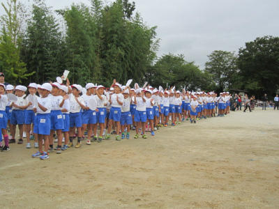 赤・白、どちらもやる気いっぱいの入場行進でした。校長や体育主任から「一人一人が、がんばっていました。」と褒められていました。