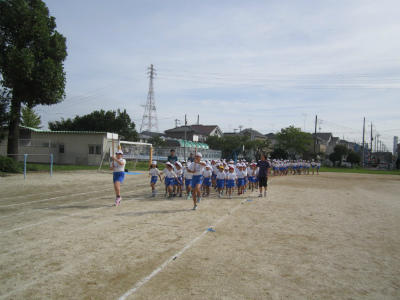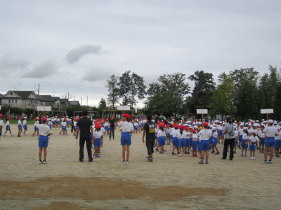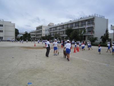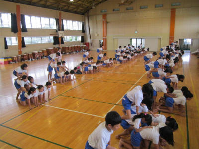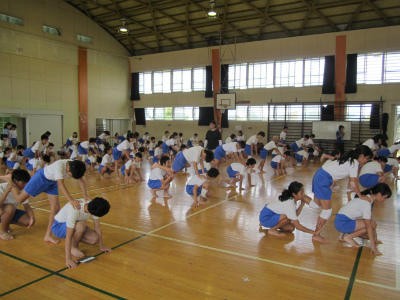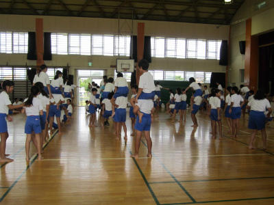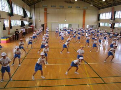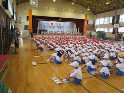 せっかくの運動会の全体練習でしたが、雨のため、体育館での練習になりました。