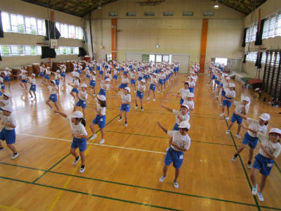 中学年も体育館で、「ダンシング・ヒーロー」。