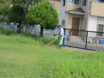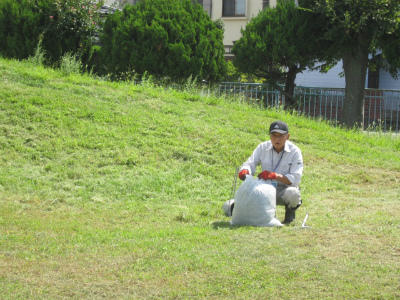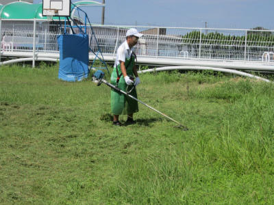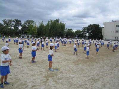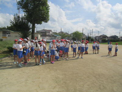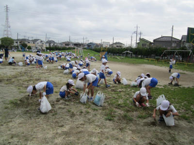 運動会を来週に控え、朝全校で校庭の除草を行いました。
