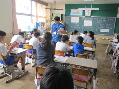 自分の教室に戻って、話し合いが、終わるのを廊下で待っている子供たち。静かに待っている立派な4年生です。