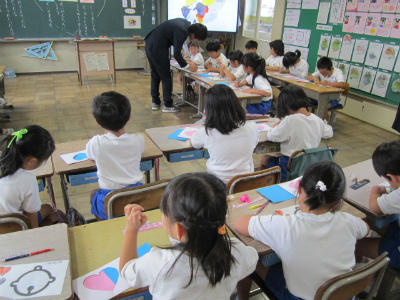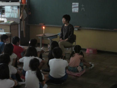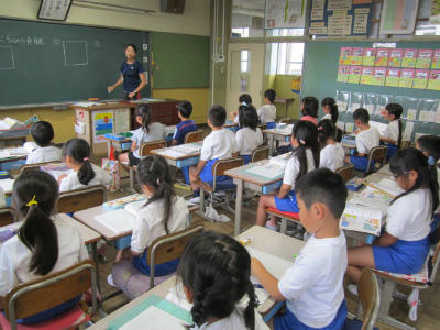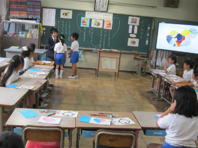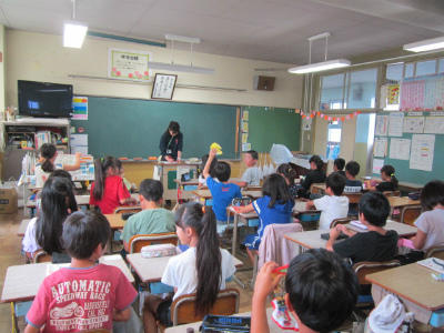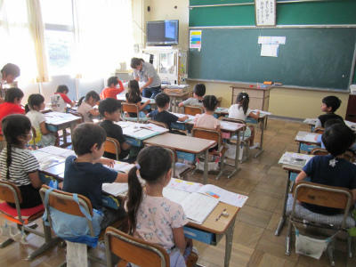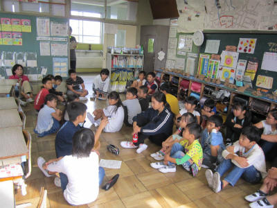 小さいとんぼが、力を合わせて、悪いこうもりをやっつけるという内容で、2年生の「スイミ-」の本と似ていると子供たちも聞いていました。