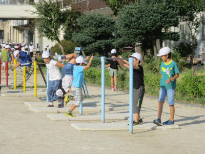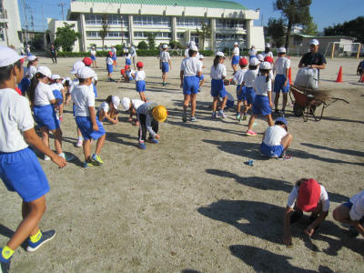 きれいになった校庭で、これから「さわやかタイム」がんばります!
