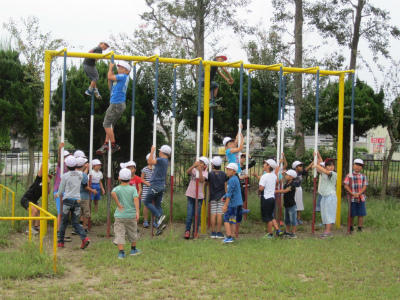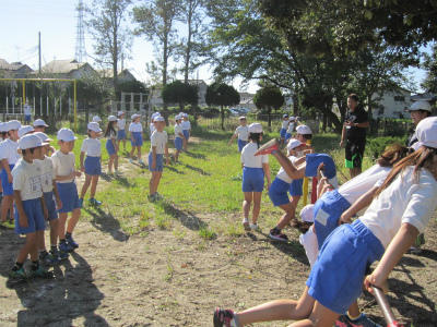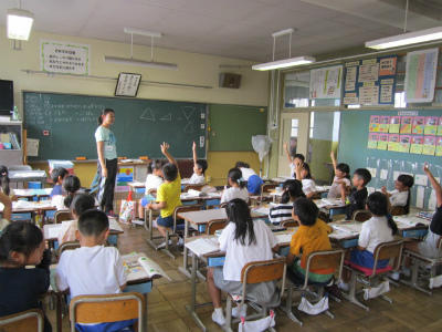 気持ちよく晴れた天気の中、子供たちはしっかり勉強しています。
