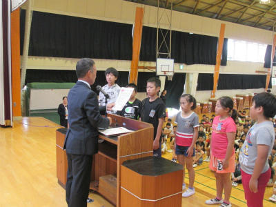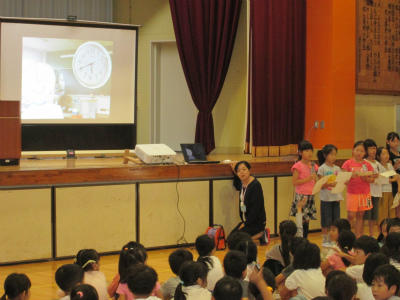 今朝の音楽朝会は、最初に1年生の発表でした。